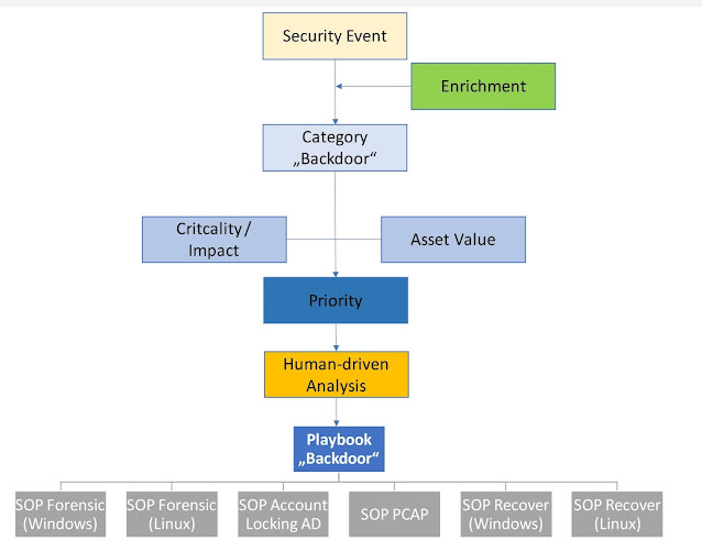 In addition it should contain all best practices and knowledge to help the CDC analyst to fulfill the triage (initial incident analysis) as well as a deeper analysis. This combines all the in advanced gained knowledge from studies, databases, models, threat intelligence, etc I mentioned before.